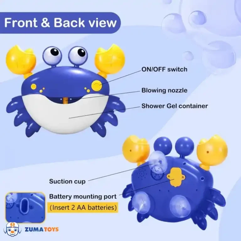 حبابساز حمام کودک طرح خرچنگ با طراحی بامزه و رنگهای شاد، حمام را به یک بازی هیجانانگیز تبدیل میکند.