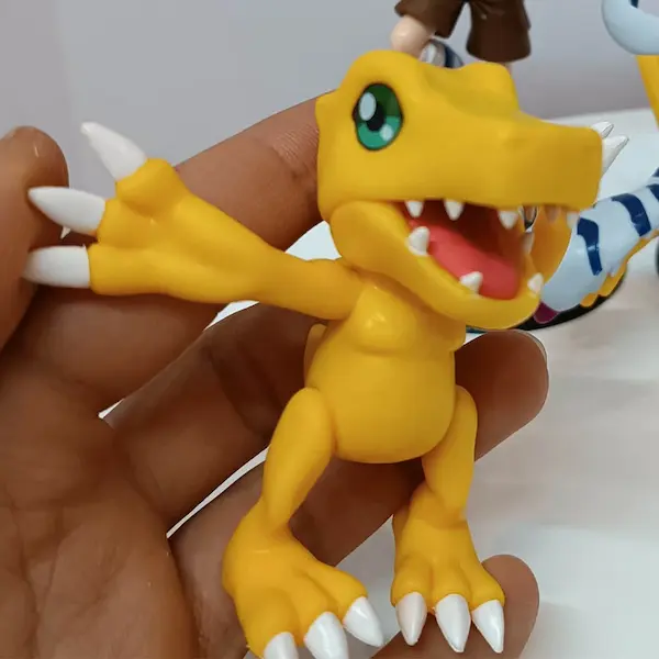 آگومون، دیجیمون همراه تای، یکی از نمادینترین شخصیتهای این مجموعه است. این فیگور با رنگ نارنجی، چشمان بزرگ و حالت بامزه طراحی شده. جزئیات بدن و فرم دستها کاملاً مطابق نسخه اصلی است و حضور آگومون باعث میشود این مجموعه ارزش بیشتری پیدا کند.