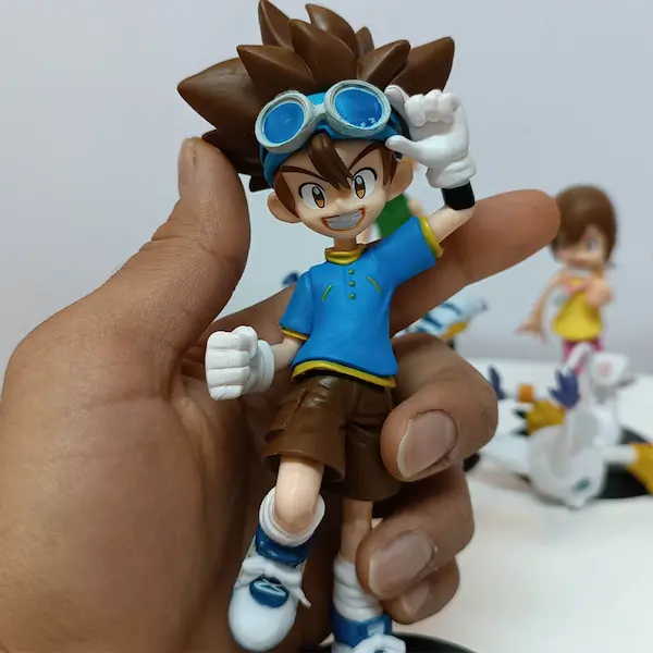 تای، رهبر گروه و یکی از محبوبترین شخصیتهای دیجیمون است. این فیگور با طراحی دقیق موها، عینک نمادین و لباس آبی و نارنجی ساخته شده. حالت بدن و چهره او کاملاً مطابق نسخه انیمه است و حس رهبری و انرژی تای را بهخوبی منتقل میکند.
