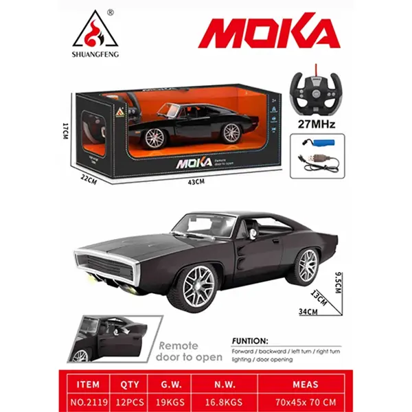 بدنهی این ماشین از پلاستیک مقاوم و باکیفیت ساخته شده و تمام خطوط و جزئیات ظاهری آن با نمونه واقعی دوج Charger مطابقت دارد. دربهای ماشین با فشردن دکمه وسط باز میشوند و طراحی اسپرت و چراغدار آن جلوهای خاص به بازی کودک میبخشد.