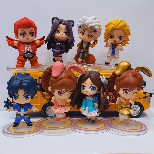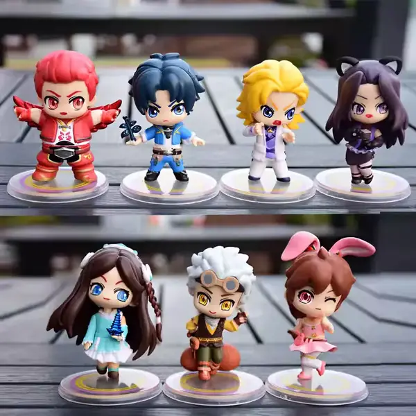 فیگور دولیو 8 عددی با ظاهر کارتونی، چهرههای بامزه و لباسهای رنگی، مناسب برای علاقهمندان به طراحیهای فانتزی و سبکهای کودکانه هستند. این مجموعه شامل ۸ فیگور با حالتهای مختلف ایستاده، نشسته یا در حال حرکت است که روی پایه مشکی دایرهای قرار دارند.