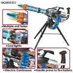 چیزی که این محصول را از بقیه متمایز میکند، سیستم الکتریکی دو حالته و خشاب زنجیری عظیم آن است که یادآور تیربارهای سنگین در فیلمهای اکشن است. این تفنگ با بهرهگیری از تیرهای نرم اسفنجی (Soft Bullet)، ایمنی کامل را حتی در محیطهای بسته تضمین میکند؛ بنابراین دیگر نگران آسیب دیدن وسایل منزل یا بدن کودکان نباشید. طراحی ارگونومیک همراه با پایه نگهدارنده (سهپایه) به کودک اجازه میدهد تا مانند یک تکتیرانداز حرفهای روی زمین مستقر شده و با دقت بالا به سمت هدف شلیک کند. این اسباببازی ترکیبی از قدرت، سرعت و هیجان است که هیچ کودکی نمیتواند به آن “نه” بگوید!
