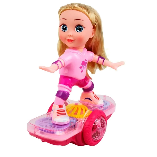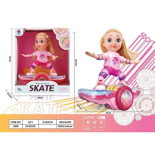 خرید محصول عروسک دختر اسکیت‌سوار موزیکال چراغدار سایز بزرگ مدل 5688