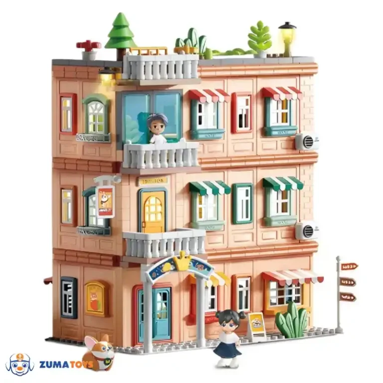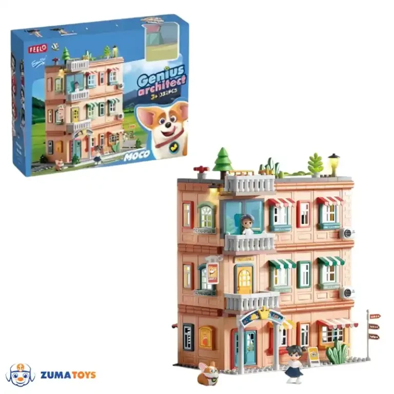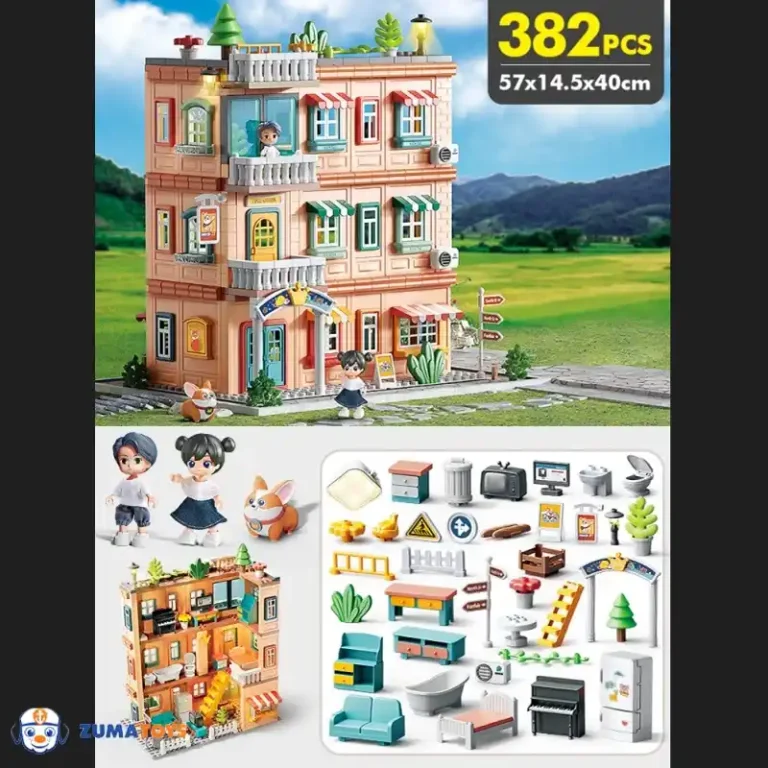 این مجموعه ساختنی با 382 قطعه لگویی درشت و ایمن طراحی شده تا کودکان خردسال بتوانند به‌راحتی خانه سه‌طبقه‌ای زیبا با وسایل کامل خانه، آشپزخانه و اتاق خواب بسازند.
