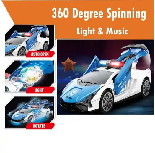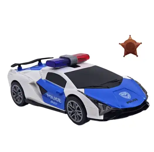 این ماشین اسباببازی پلیس مجهز به چراغهای رنگی متنوع و صدای آژیر پلیس است و چندین مدل آهنگ شاد را پخش میکند. ترکیب جلوههای شنیداری و دیداری باعث افزایش هیجان بازی شده و کودک را برای مدت طولانی سرگرم نگه میدارد. وجود نشان پلیس نیز این امکان را فراهم میکند تا کودک خود را در نقش یک افسر پلیس تصور کند.
