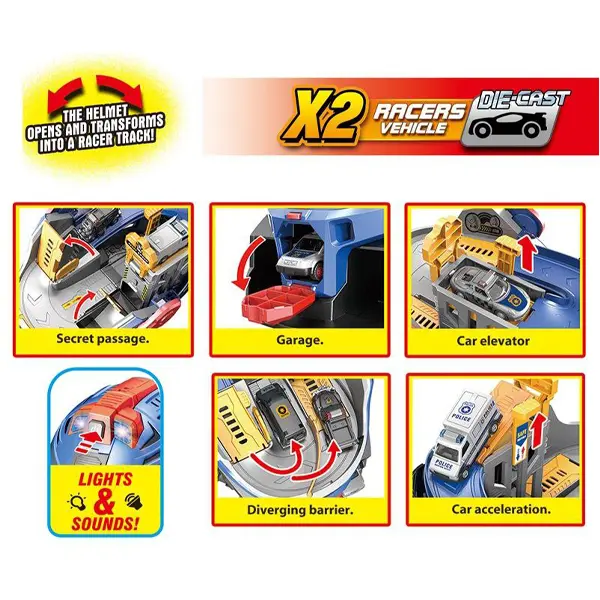 این مجموعه جذاب شامل ۴ ماشین فلزی سرعتی، ۲ گاراژ کوچک، نورپردازی زیبا و صداهای واقعی پلیسی است که تجربه‌ای متفاوت از بازی را برای کودکان فراهم می‌کند.
