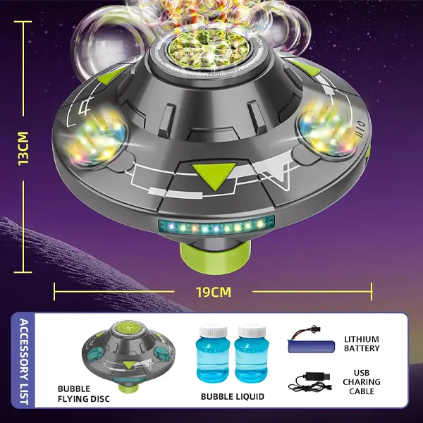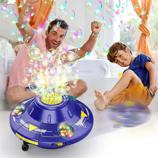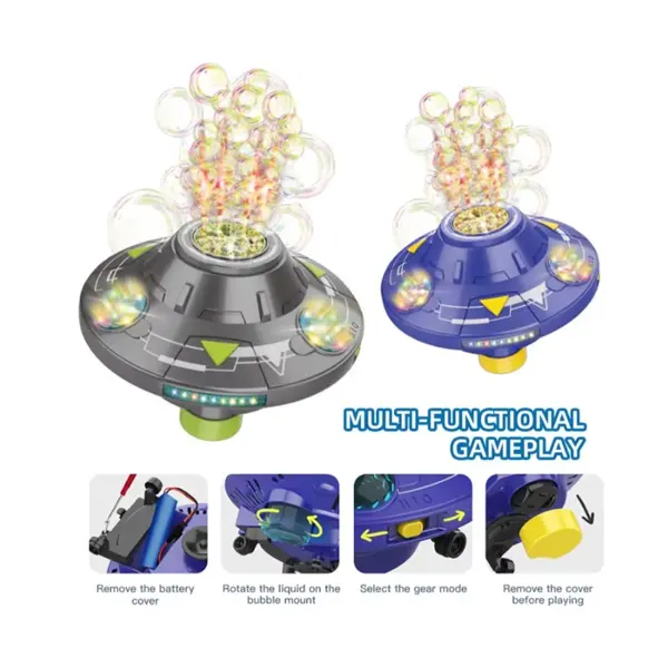 حبابساز طرح سفینه مدل UFO؛ اسباببازی موزیکال و چرخان با نور و حرکت هوشمند برای کودکان