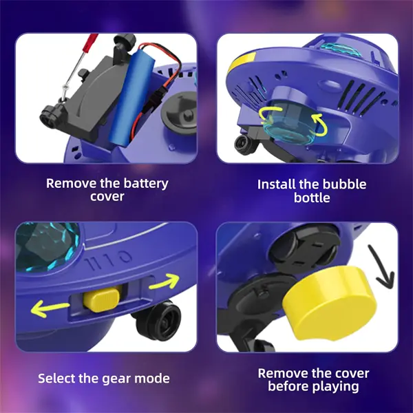 این حبابساز دارای ۳۶ خروجی تولید حباب است که در چند ثانیه فضا را پر از براقترین و رنگارنگترین حبابها میکند. حرکت آزاد آن بر روی زمین با افکتهای نوری زیبا، فضایی خیالانگیز همانند پرواز یک سفینه در شب ایجاد میکند.